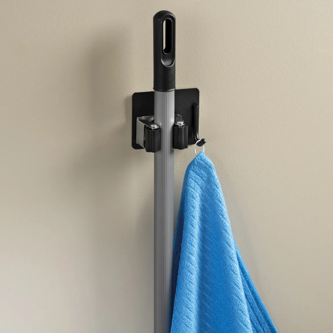 Sa facilité d’installation le rend accessible à tous et il est compatible avec tous types de manches grâce à ses roulettes sur les côtés. Doté d’un crochet, vous pourrez également y suspendre un torchon de vaisselle, une serpillère ou encore une pelle, un râteau, etc. Disposez-le où vous le souhaitez, dans le cellier, la cuisine, le placard de l’entrée, le garage… Il vous permettra d’avoir votre balai à disposition très facilement. Cet accroche balai adhésif se fixe sur le mur dans besoin de clou ni de vis.