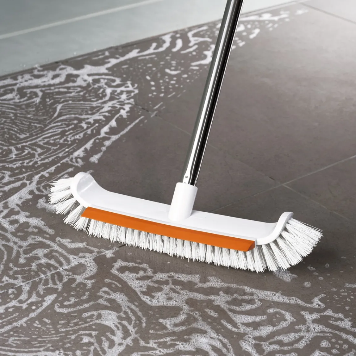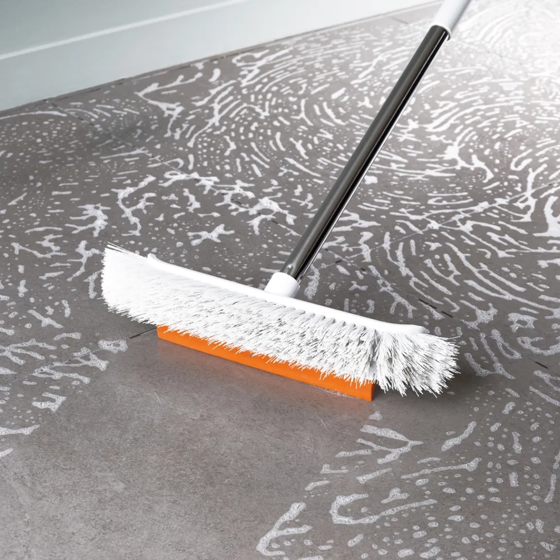 Cet ustensile de ménage est composé d’une face avec un balai à poils durs pour nettoyer et brosser les saletés, jusqu’aux plinthes. Son autre face intègre une raclette pour nettoyer les sols et les surfaces vitrées aisément.