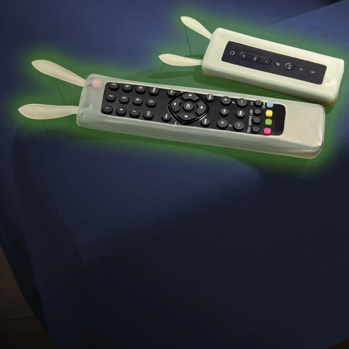 Ces 2 housses ont tout pour plaire ! Non seulement elles protègent vos télécommandes des coups et de la poussière mais en plus, elles sont phosphorescentes pour être bien visibles quand il fait sombre.