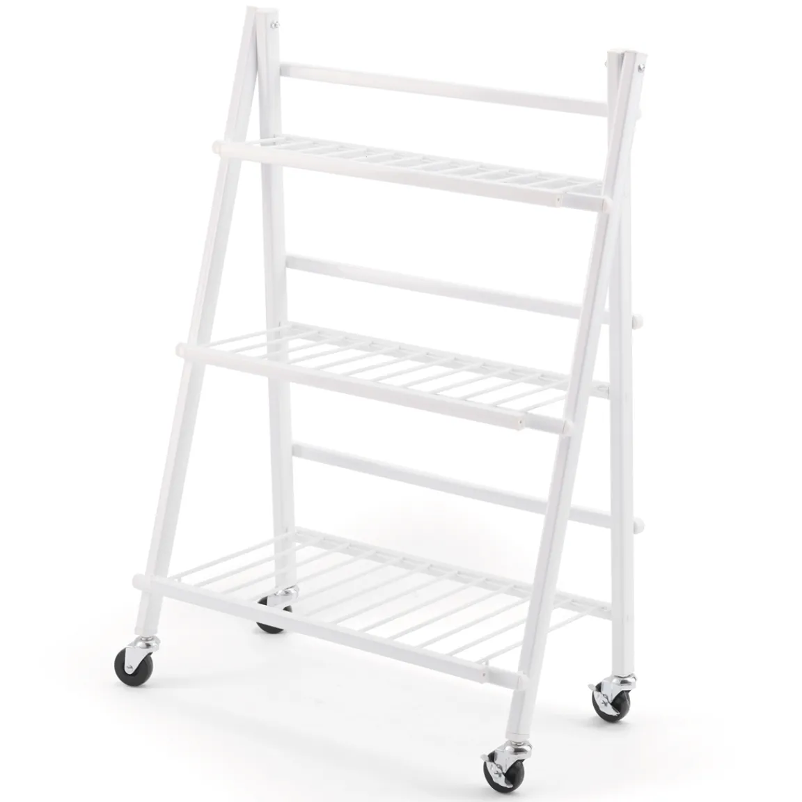 Un escalier pour plantes monté sur 4 roulettes (dont 2 avec freins), facile à déplacer dans la maison.