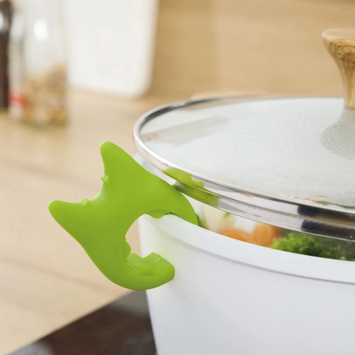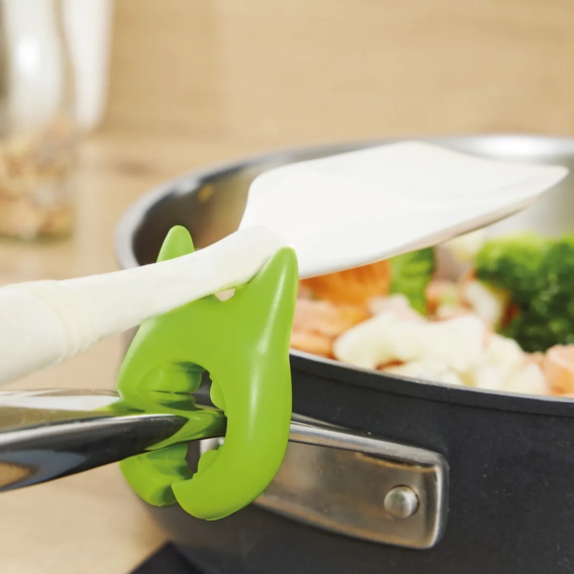 Ces petites pinces sont très pratiques : elles se clipsent sur tous les manches de vos poêles, casseroles, pour y poser des ustensiles. Elles s’installent aussi entre les couvercles pour limiter les débordements. C’est ingénieux, pratique et peu onéreux !