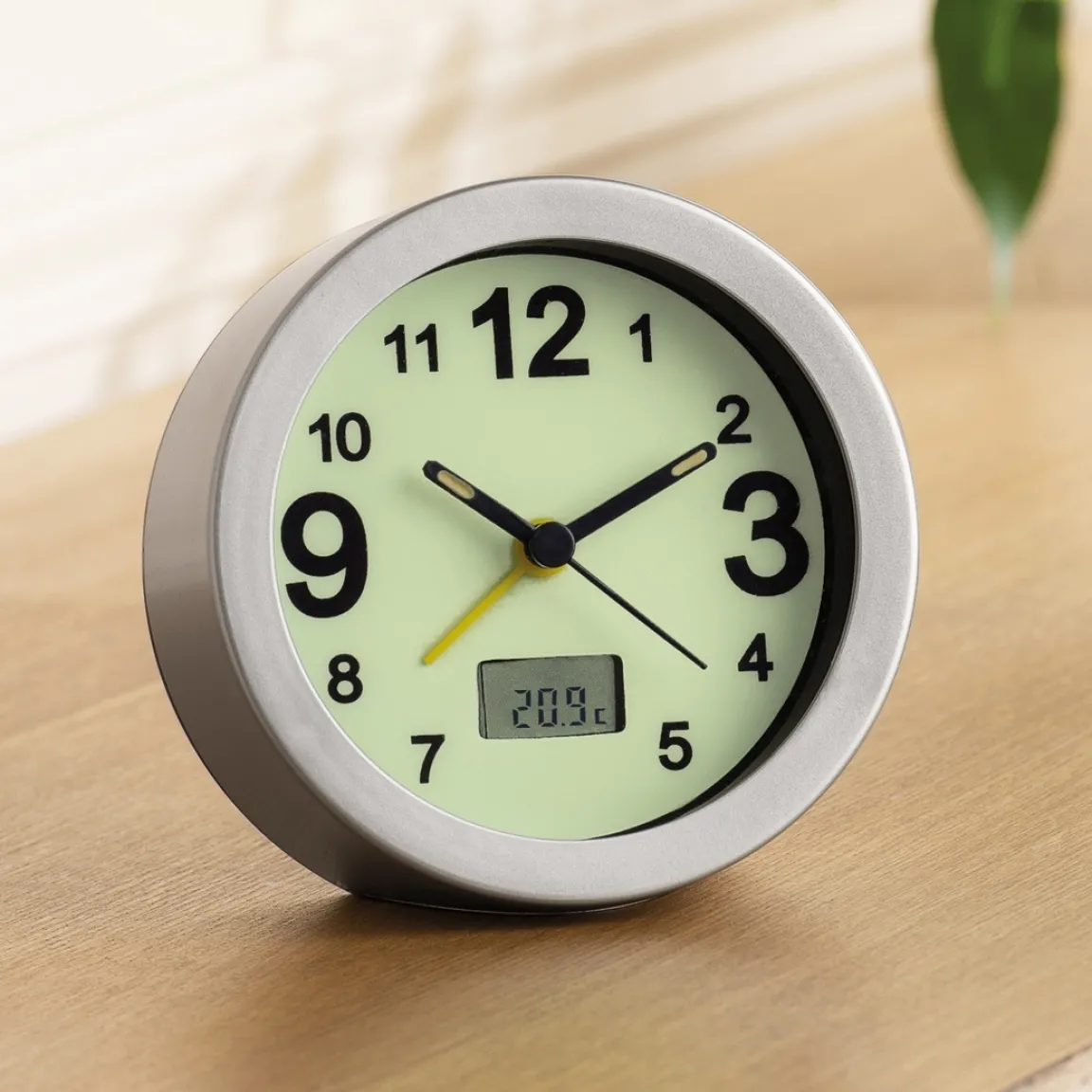 Ce joli réveil vous indique l’heure de jour comme de nuit grâce à ses aiguilles et son cadran phosphorescents. Petit, léger et design, il affiche également la température de la pièce. En matière plastique. Dimensions : 9,5 x 3,8 x 9,5 cm. Fonctionne avec une pile AA (non fournie).