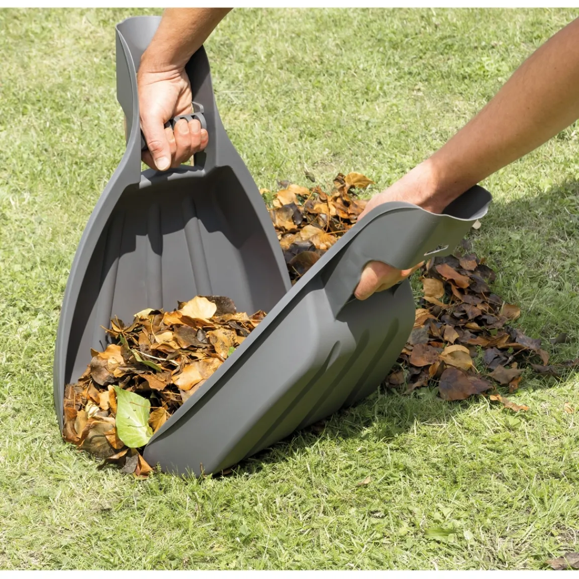Ces ramasse-feuilles s’utilisent à la façon d’une pelle. Il suffit de glisser vos mains dans les poignées et de s’en servir comme des extensions de vos mains pour ramasser les déchets de jardin : feuilles, pelouse, bois mort… Les ramasse-feuilles, grâce à leur grande taille, permettent de récolter des grandes quantités.