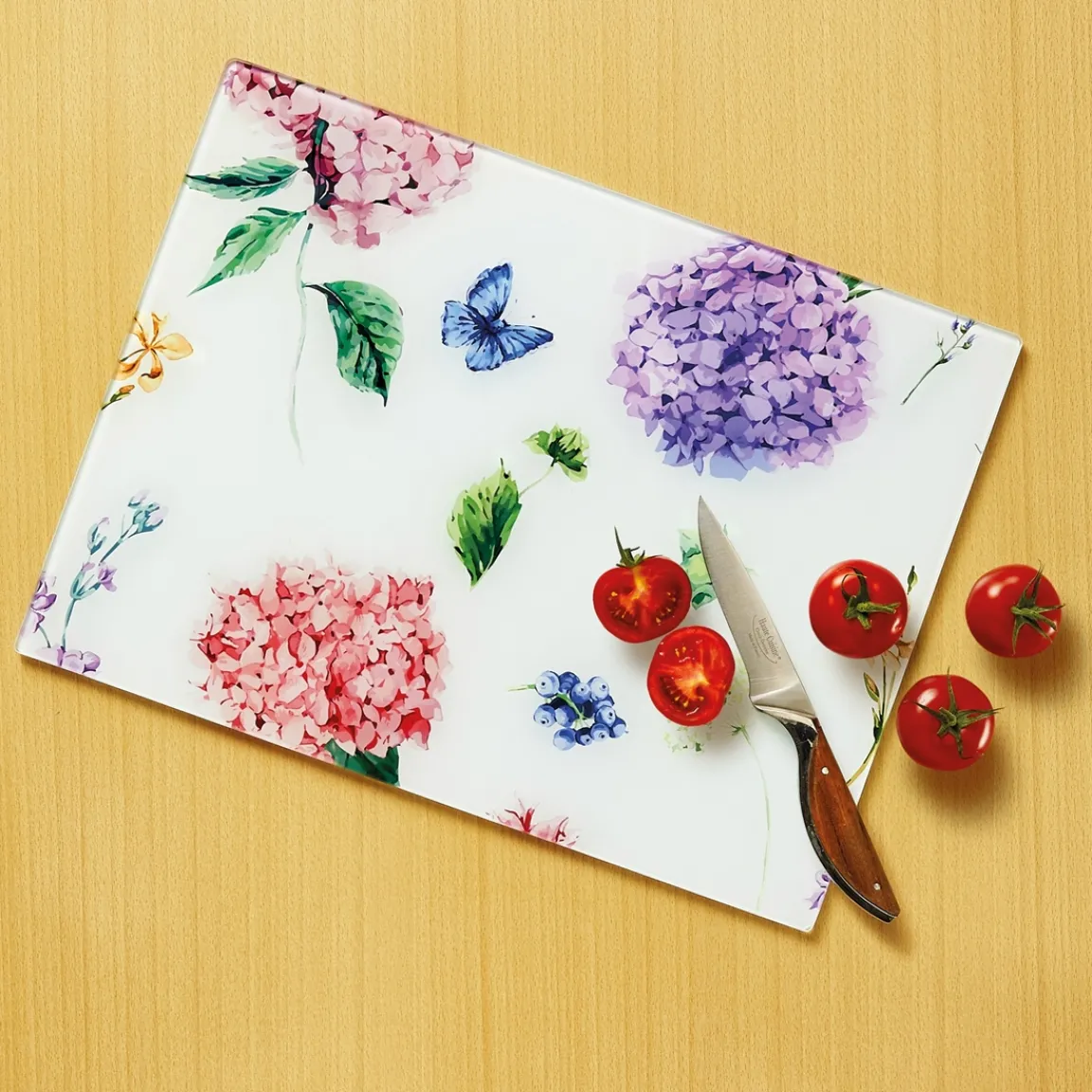 Pour émincer ou couper les légumes, couper de la viande, préparer le poisson, recevoir des plats chauds, étaler la pâte, protéger le plan de travail : cette ravissante plaque multifonctions, au décor fleuri vous assiste en toutes circonstances !