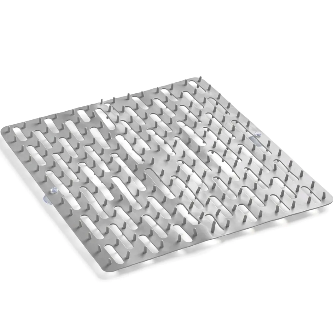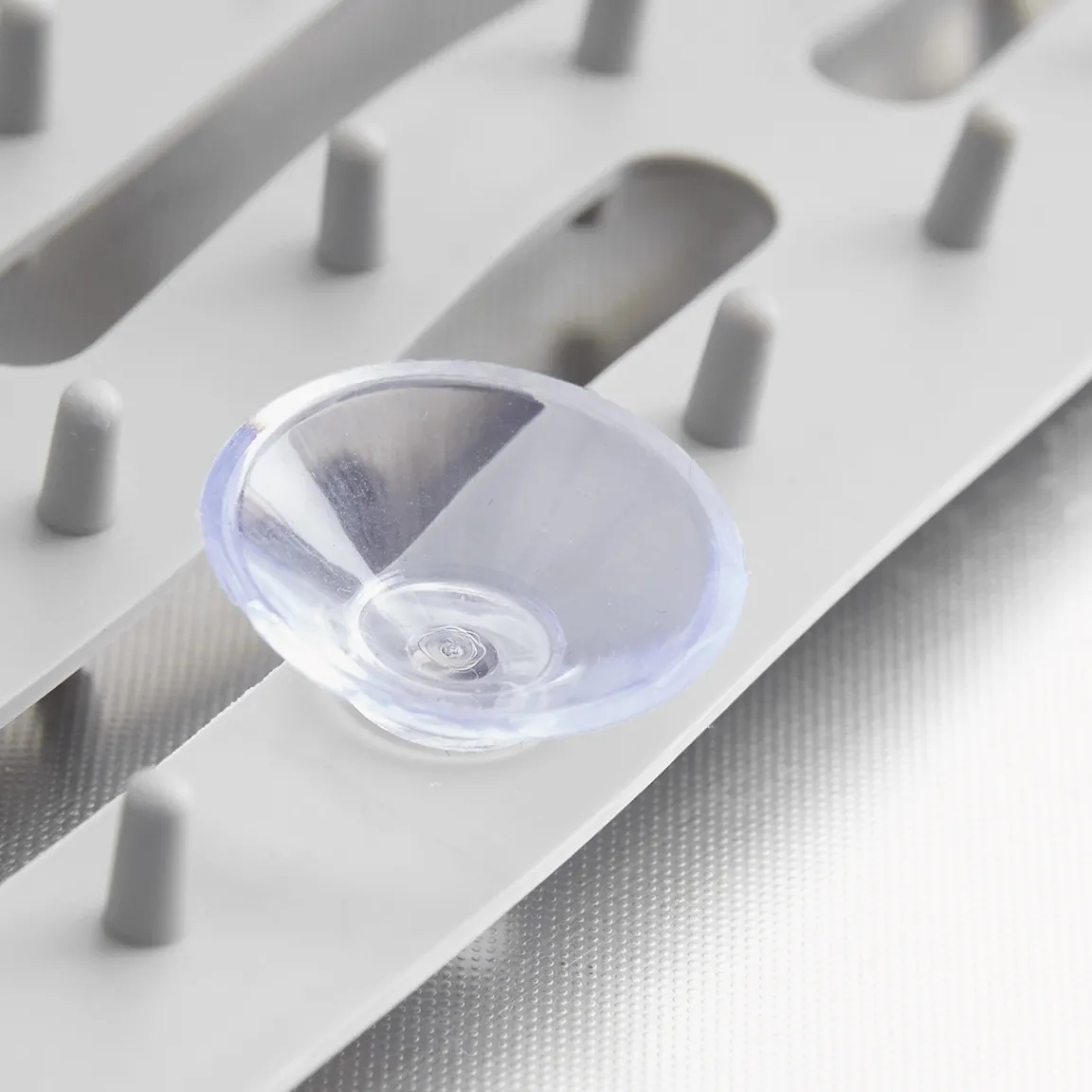 Cet égouttoir est doté de ventouses lui permettant d’être fixé entre les deux éviers : ainsi, lavette et éponges posées dessus bénéficient d’une bonne circulation d’air pour s’égoutter et sécher plus vite. En matière plastique. Dim. 26 x 25,5 x 1,5 cm.