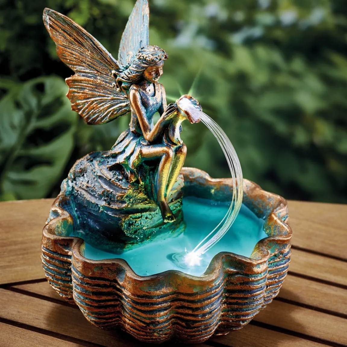 Comptez sur cette jolie fée pour animer votre extérieur : dotée d’un capteur solaire, elle illumine les fibres optiques du bassin lorsque la nuit tombe, pour apporter un éclairage féerique et original !