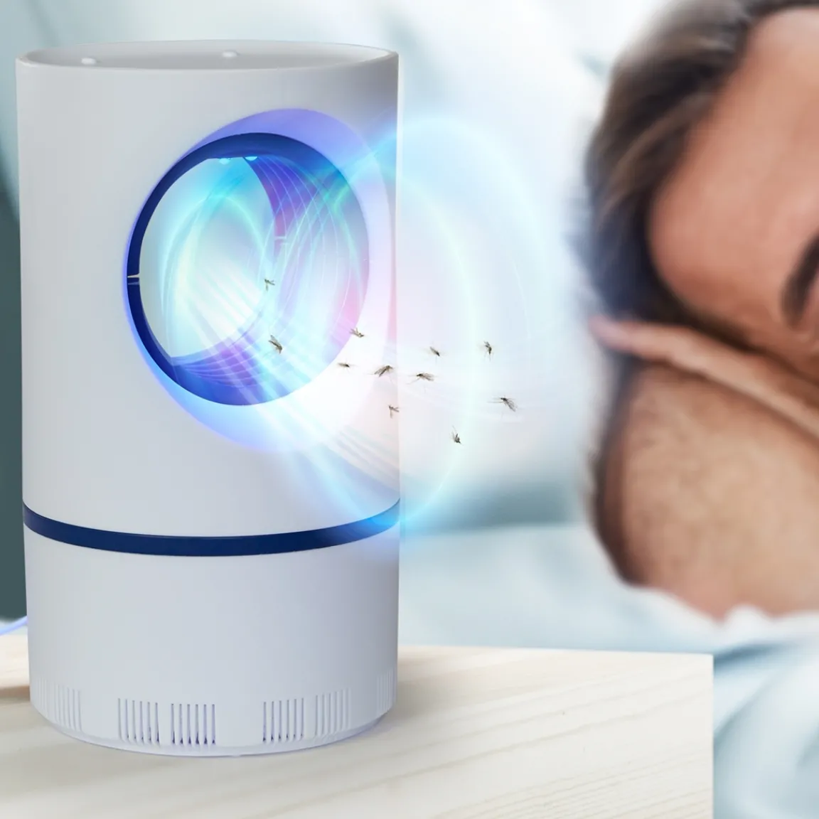 Voici un appareil astucieux dans la lutte contre les insectes : cet anti-moustiques attire les moustiques grâce à sa lumière bleue, puis les aspire grâce à son ventilateur intégré ! Le corps de l’insecte volant tombe alors dans le récipient amovible et vous voilà tranquille, à l’abri des piqûres ! Sans bruit, sans produit toxique. Facile à utiliser, il suffit de le brancher sur secteur (câble USB fourni) et vous en servir partout où vous le souhaitez.