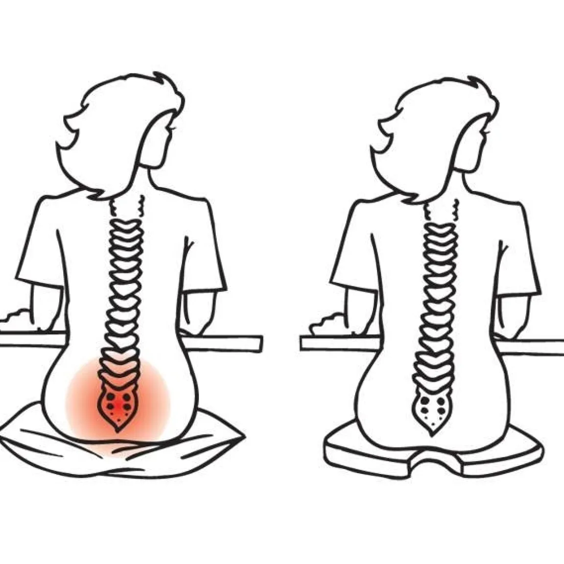 La découpe spéciale du coussin ergonomique contribue à diminuer la pression sur le coccyx