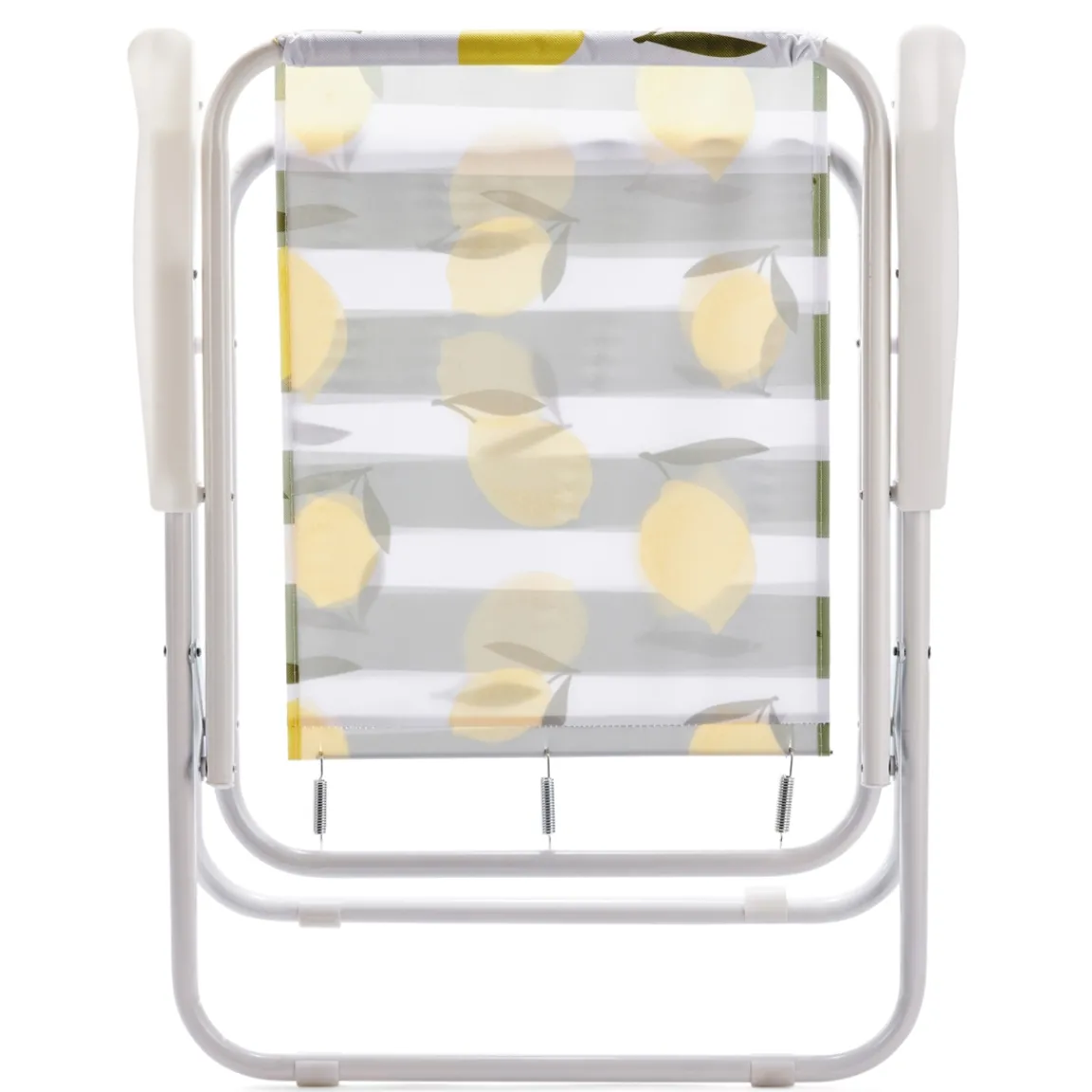La table pratique est dotée d’une poignée de transport, la chaise combine commodité et confort. Du mobilier robuste, décoré de citrons pour apporter du pep’s à votre extérieur !