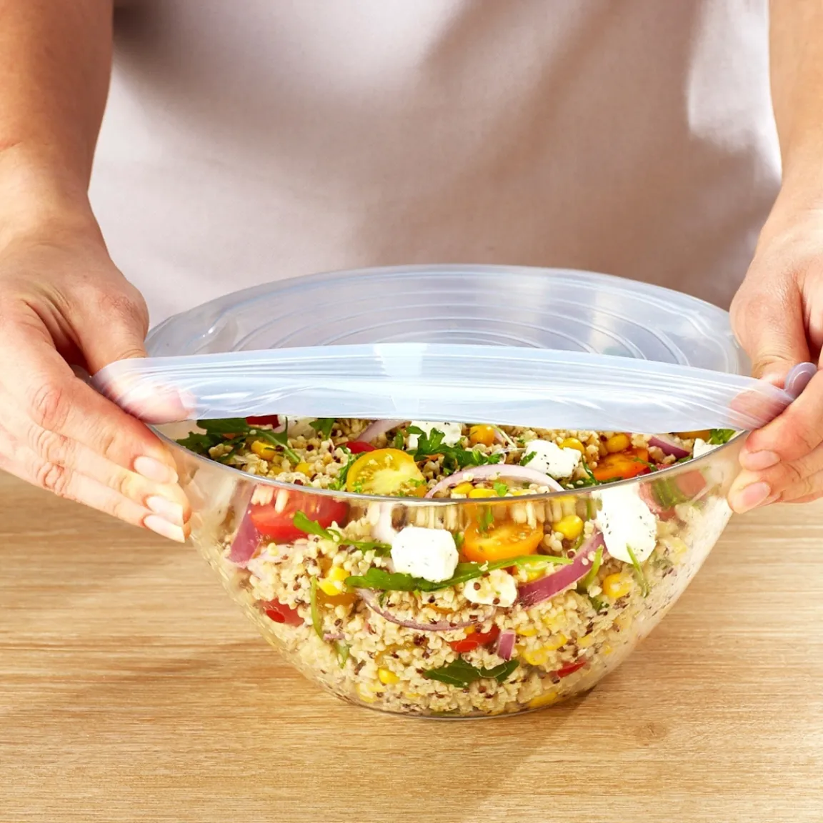 Optez pour un couvercle souple et qui ferme hermétiquement vos récipients pour une conservation optimale de vos aliments. Que ce soit pour vos plats cuisinés à l’avance, pour les restes de vos repas que vous gardez ou autre, le couvre-tout en silicone est l’ parfait pour conserver les aliments au frais. Pratiques, résistants et adaptés à de grands écarts de températures, ils sont utilisables sur vos plats ronds à mettre dans le réfrigérateur ou le congélo. Il est même possible de s’en servir pour réchauffer vos repas au micro-ondes ou même au four et éviter ainsi les éventuelles éclaboussures. Faciles à nettoyer, nos couvre-tout passent aussi au lave-vaisselle.