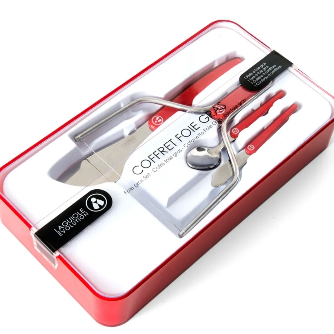 Les amateurs de foie gras apprécieront ce coffret Laguiole(r) dédié à la découpe, à la présentation et à la dégustation du foie gras, dans les règles de l’art. Le kit à foie gras de la marque Laguiole(r) comprend 1 lyre pour couper les tranches facilement, 1 pelle pour servir, 1 tartineur et 1 cuillère pour la confiture ou le chutney.