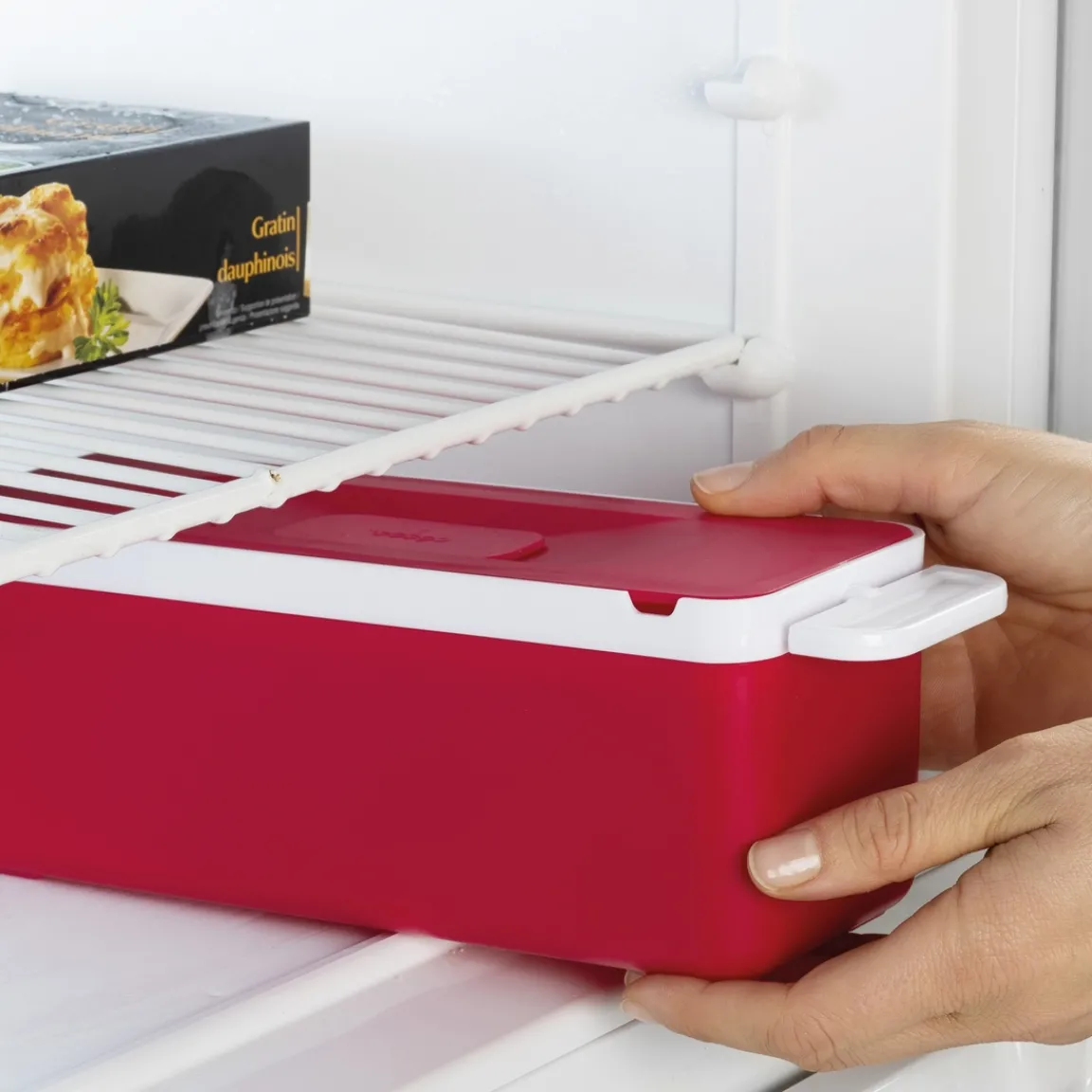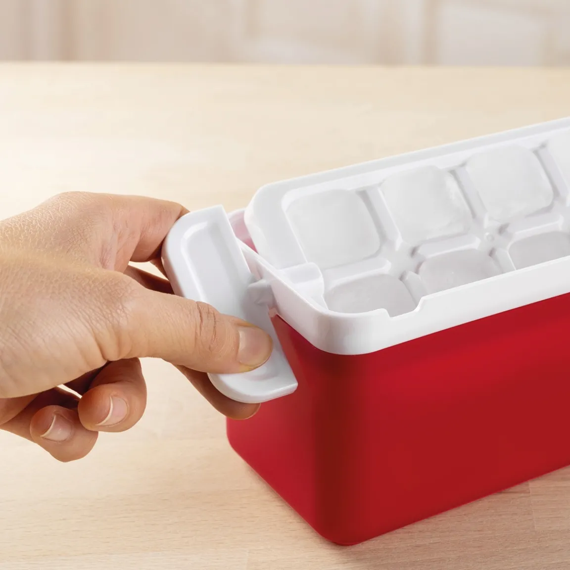 Astucieux, ce moule à glaçons est doté d’une réserve. Elle permet donc de faire des glaçons, de les stocker en dessous par un système pivotant et refaire aussitôt une tournée de 12 glaçons ! Pourvue d’une petite pelle de service bien pratique.