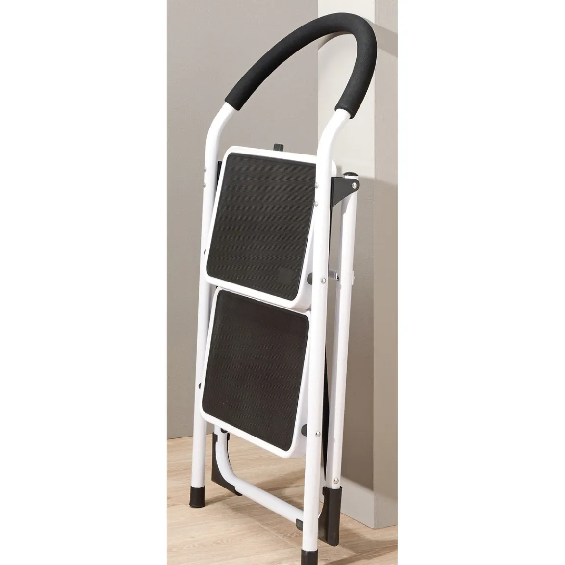 Avec ses 2 larges marches (37 x 26 cm) au revêtement en plastique antidérapant, vous ne risquez pas de glisser de ce marchepied 2 marches pliable, aussi sûr que robuste. Idéal pour tous vos petits travaux quotidiens en hauteur ! Pratique aussi, l’escabeau peut servir de siège grâce au dossier.