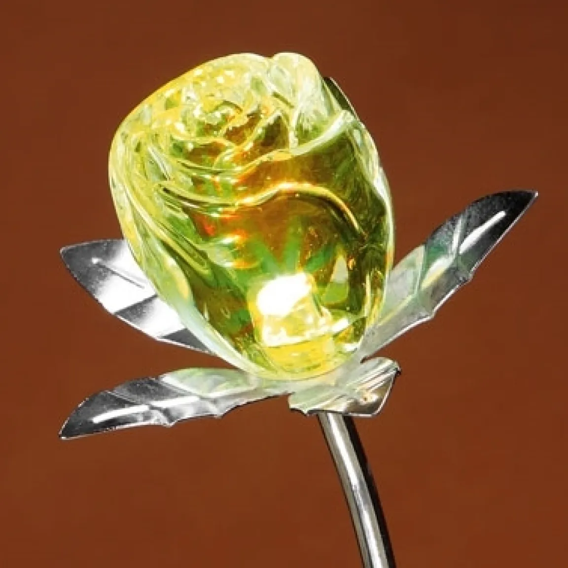 Dans le salon ou dans l’entrée, cette rose au cœur de cristal va vous enchanter. Jaune, bleu, rouge…. Joliment dressée sur un socle argenté, cette fleur incroyable change de couleur pour attirer tous les regards.