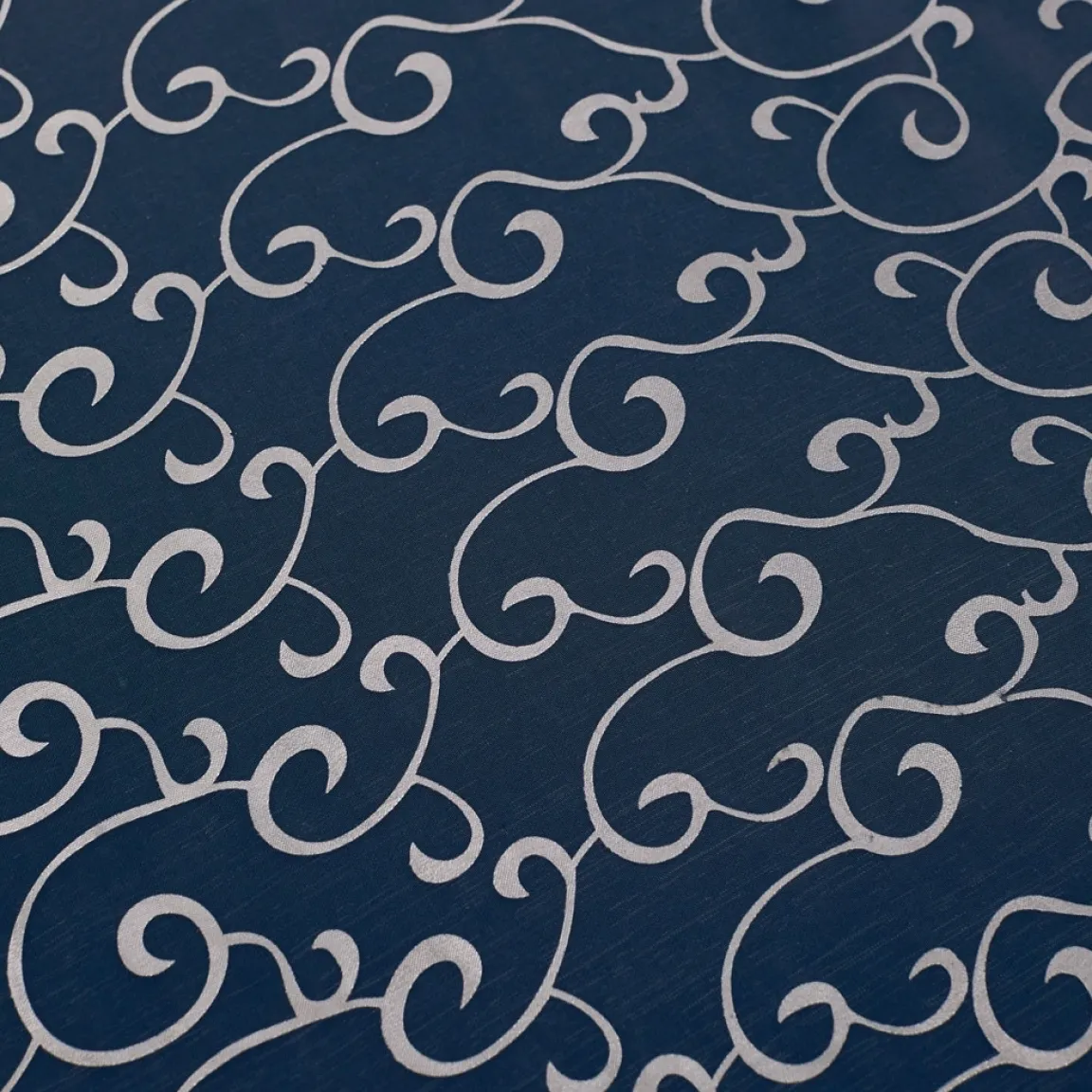 N’importe quelle nappe unie se transforme en décoration précieuse grâce à cette sur-nappe en organza aux élégantes arabesques argentées. Comble du raffinement, elle est finie par un large bord en tissu satiné qui lui assure un beau tomber.