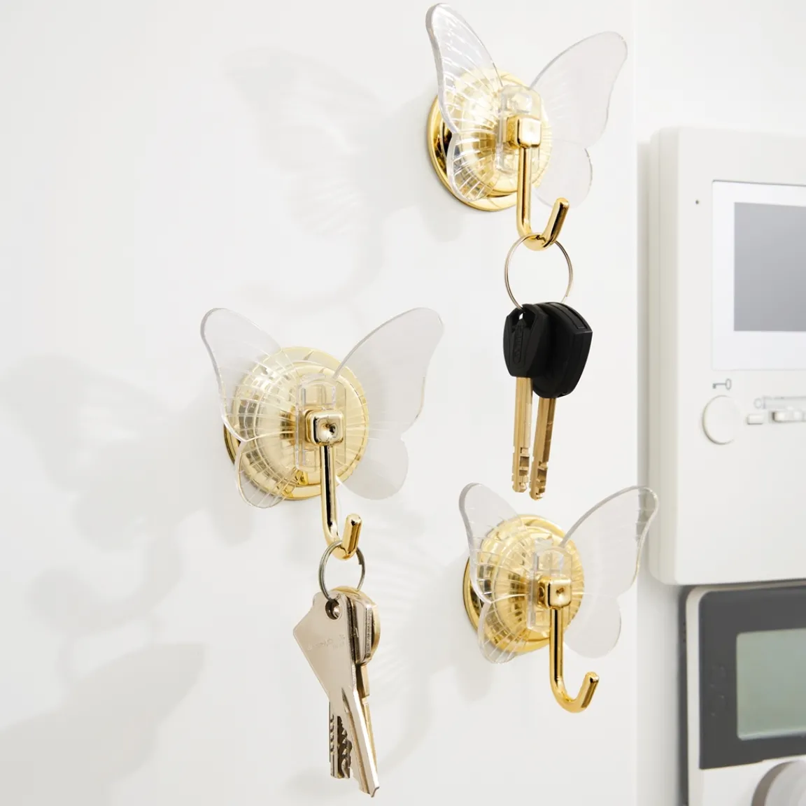 Ces 3 crochets se fixent sur toutes les surfaces lisses grâce à leur ventouse et se retirent sans laisser de traces. En forme de papillons délicats, rien de plus joyeux pour y suspendre vos clés, bijoux et autres accessoires !