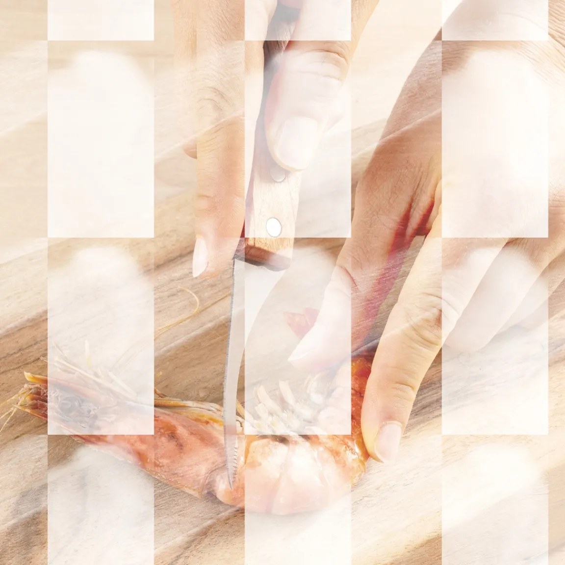 Cet ustensile va grandement vous faciliter la préparation des crevettes ! Sa forme incurvée tranchante permet de leur couper la tête et de les décortiquer facilement, son bord dentelé est idéal pour éliminer la ligne de dos.