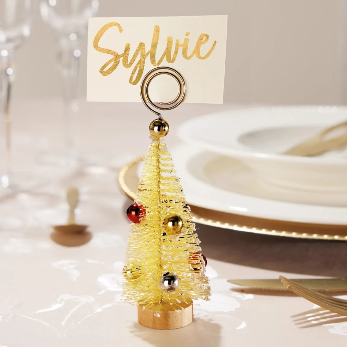 Marque-places festifs en forme de sapin dorés