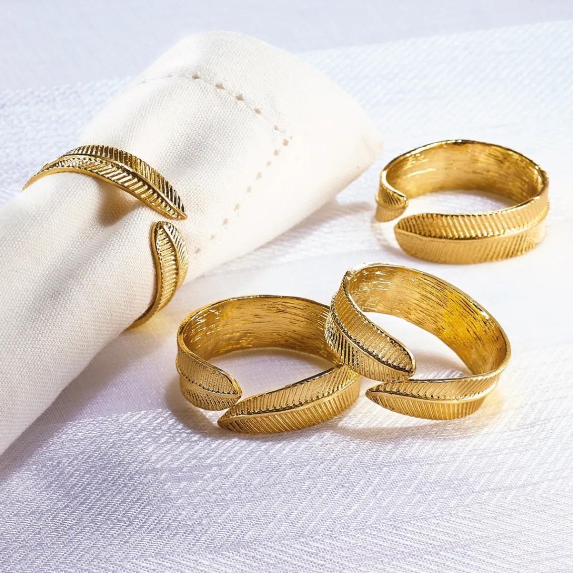 Sublimez votre table de fête avec ces superbes ronds de serviettes, en forme de plume dorée ! Cet accessoire décoratif tiendra élégamment la serviette roulée et apportera la bonne dose de chic à votre décoration…