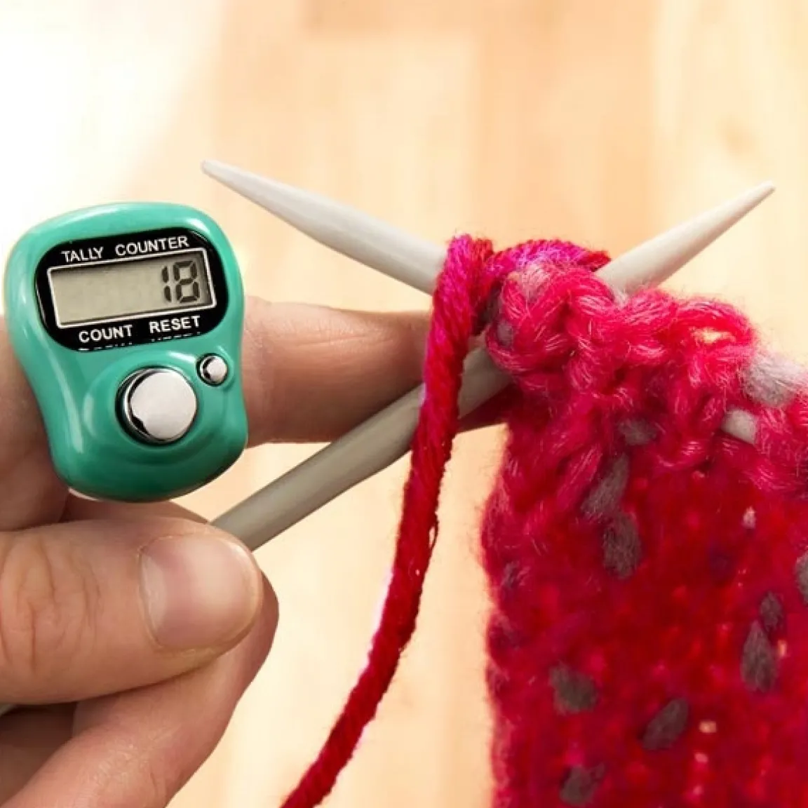 Cette petite bague va plaire à toutes les tricoteuses ! A la fin de chaque rang, appuyez sur le gros bouton pour le mémoriser, la bague l’additionnera aux précédents, ainsi vous ne vous perdrez plus dans les comptes ! Pour remettre à zéro, appuyez simplement sur le petit bouton reset. Se fixe sur le doigt grâce à son bracelet réglable. Plastique. Bracelet : 10,5 x 1,5 cm ; boîtier : 3 x 2,5 x 1 cm env. 1 pile bouton (fournie).