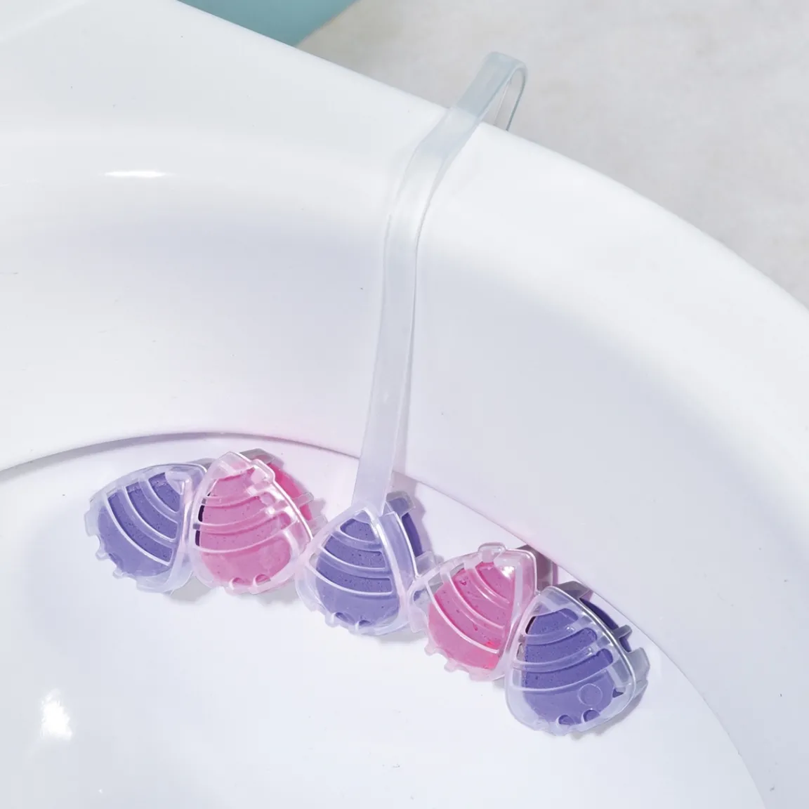 Astucieux, ce bloc WC composé de 5 « gouttes » alignées permet à une grande quantité d’eau d’entrer en contact avec le produit, décuplant ainsi ses effets. Parfumé senteur océan ou pin (parfums aléatoires), il nettoie la cuvette à chaque chasse et empêche le tartre de se déposer. Son efficacité dure longtemps !