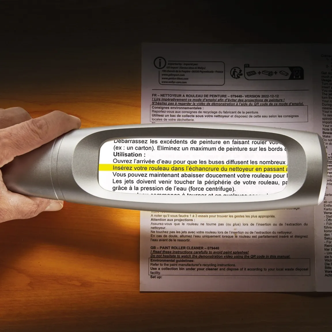 Avec sa ligne de guidage, plus aucun détail ne vous échappera et vous pourrez lire avec aisance les plus petites lettres des notices, plans ou journaux…