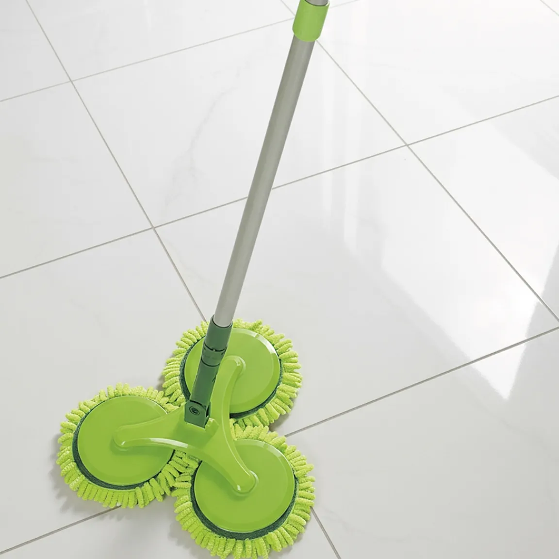 Avec son plateau plat et triangulaire, ce balai se faufile partout dans la maison, même dans les coins et recoins et laissent vos sols parfaitement nettoyés. Ses housses microfibres, avec leur texture « chenille », sont ultra absorbantes et s’utilisent à sec ou humides. Doté d’un manche télescopique et flexible et de 3 plateaux rotatifs, ce balai fait le travail à votre place : plus besoin de bouger les meubles ni de se courber pour épousseter en dessous. Pratique, ultra maniable : ce balai en devient indispensable ! Aluminium et microfibre (84% polyester, 16% polyamide). Dim. 30 x 30 x 105 à 140 cm.