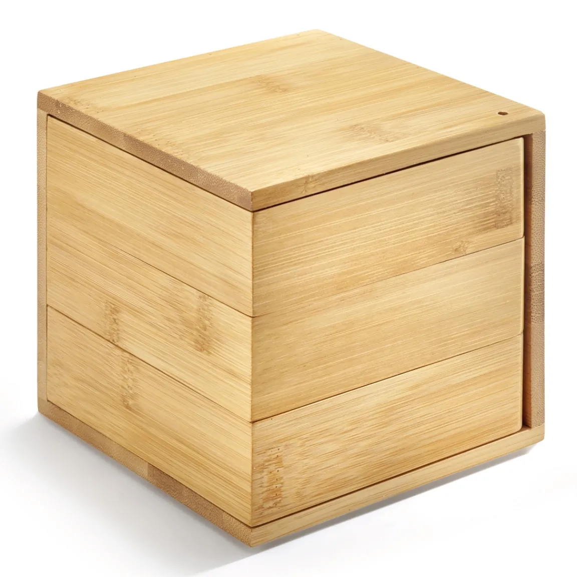 Ce joli vide poches en bambou est aussi pratique que décoratif ! Compact, il est doté de 3 compartiments pivotants, tapissés de feutrine, pour y ranger vos petits objets du quotidien : clés, bijoux, monnaie, fournitures… Son design élégant et sa forme compacte lui permettent de trouver sa place aisément dans toutes les pièces de la maison ! Sur une desserte dans l’entrée ou dans la salle de bains, sur une commode dans la chambre ou le bureau, il sera toujours idéalement placé !